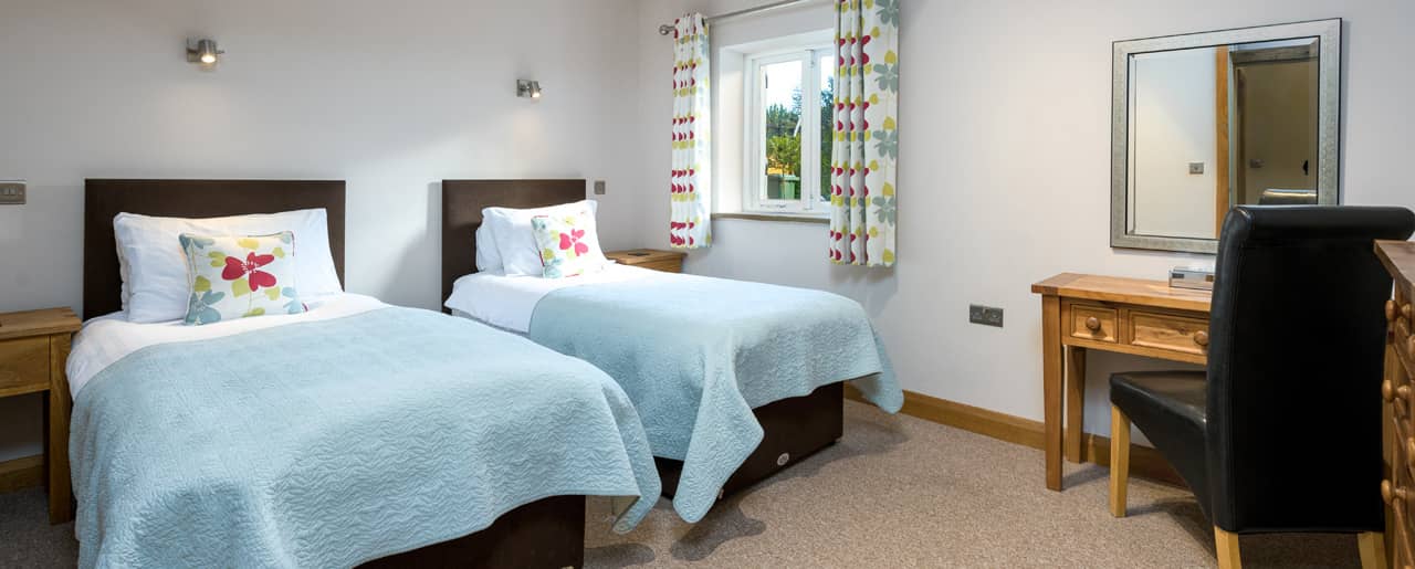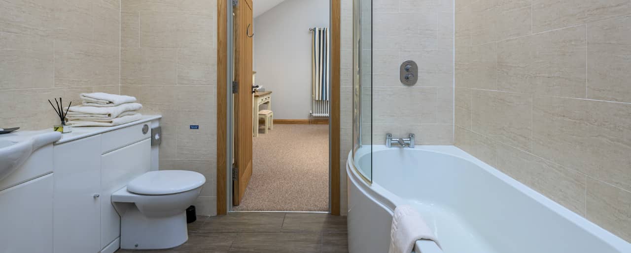 The Stables lounge has a woodburner to keep you warm and cosy on those chilly winter nights. Stables cottage includes a large modern kitchen including microwave and oven for groups, friends and families. Accommodation for groups with super king size bedroom and original oak beams. This luxury super king size bedroom with ensuite bathroom. Stables Cottage ensuite bathroom Stables Cottage twin bedroom Stables Cottage step free shower room Stables Cottage open plan lounge/kitchen/diner